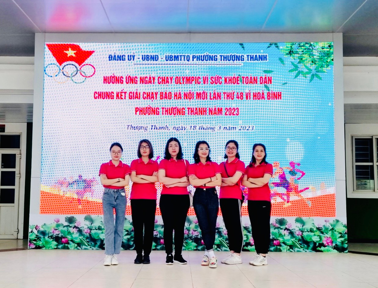 Trường Tiểu học Thượng Thanh đã có 06 nữ cán bộ, giáo viên tham gia “Ngày chạy Olympic vì sức khỏe toàn dân, vì hòa bình” cự ly 800m với không khí vui tươi, đoàn kết, góp phần tạo ra một không khí sôi động trong toàn phường.