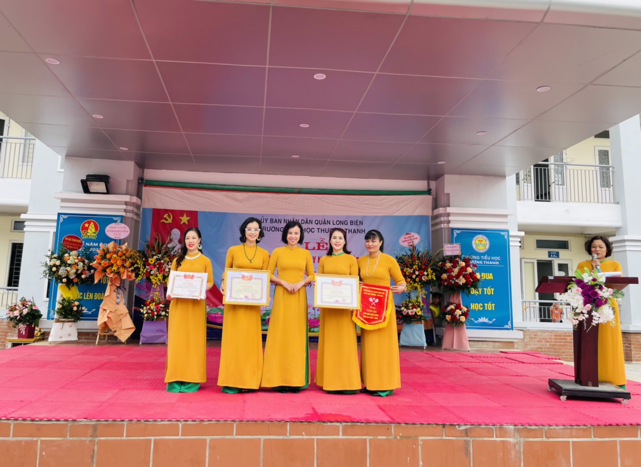 Tiếp theo chương trình văn nghệ, nghi lễ chào cờ và giới thiệu đại biểu diễn ra trang nghiêm, trọng thể. Tiếp đó, cô Nguyễn Thị Vân – BT chi bộ, Hiệu trưởng nhà trường đọc bài diễn văn ôn lại truyền thống hiếu học, tôn sư trọng đạo của dân tộc ta, biểu dương thành tích của thày trò nhà trường và phát động thi đua. Bài diễn văn của cô được toàn trường hưởng ứng bằng những tràng pháo tay vang dội. Trong những năm qua, nhà trường luôn nhận được sự quan tâm của Đảng ủy, UBND, UBMTTQ phường Thượng Thanh. Về dự buổi lễ, đồng chí Nguyễn Viết Thắng – TV ĐU, CT UBMTTQ và đồng chí Nguyễn Việt Hùng – PCT MTTQ đã tặng hoa chúc mừng nhà trường. Ban đại diện CMHS nhà trường cũng bày tỏ sự tri ân thầy cô bằng những lẵng hoa tươi thắm.