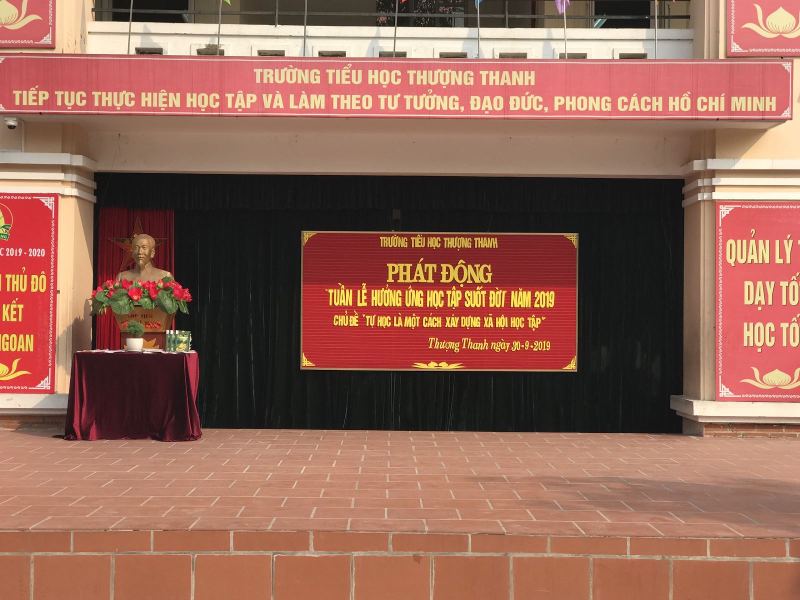 Thực hiện Công văn số 4304/SGD&ĐT-GDTX ngày 27/9/2019 của Sở GD&ĐT Hà Nội về tổ chức “Tuần lễ hưởng ứng học tập suốt đời” năm 2019 và kế hoạch 01/KH-BCĐ của Ban chỉ đạo xây dựng xã hội học tập – UBND quận Long Biên, sáng ngày 30-9-2019, trường TH Thượng Thanh tưng bừng tổ chức phát động hưởng ứng “Tuần lễ học tập suốt đời” với chủ đề “Tự học là một cách xây dựng xã hội học tập”.